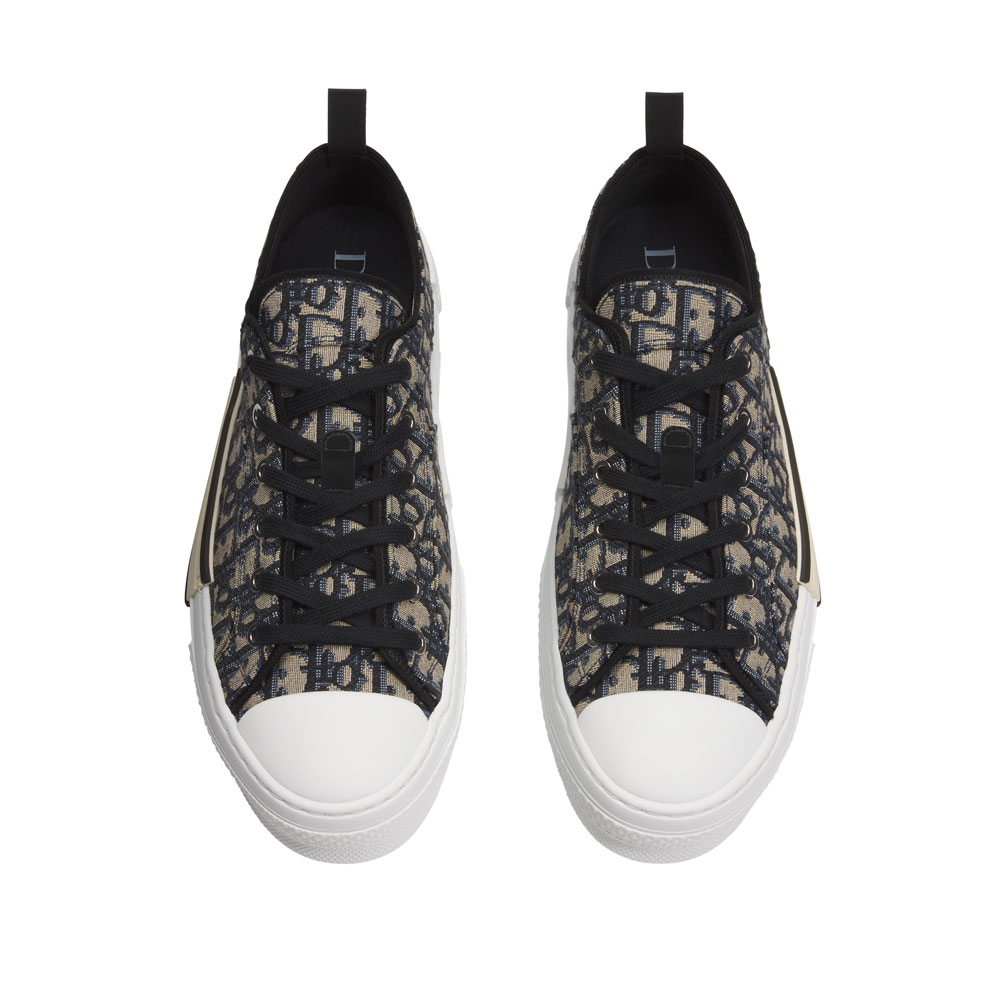 Crafted with cotton, technical fabric, and brass detailing. Side-sewn construction with Dior signature on sole. Low-top design pairs well with casual wear.