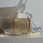 Crafted with a metallic, diamond?inspired finish, the bag includes a chain and leather strap. Inspired by 1960s Serpenti jewelry, it offers a main compartment, front and back pockets, an interior open pocket, a customizable mirror, and an engraved metal logo tag.