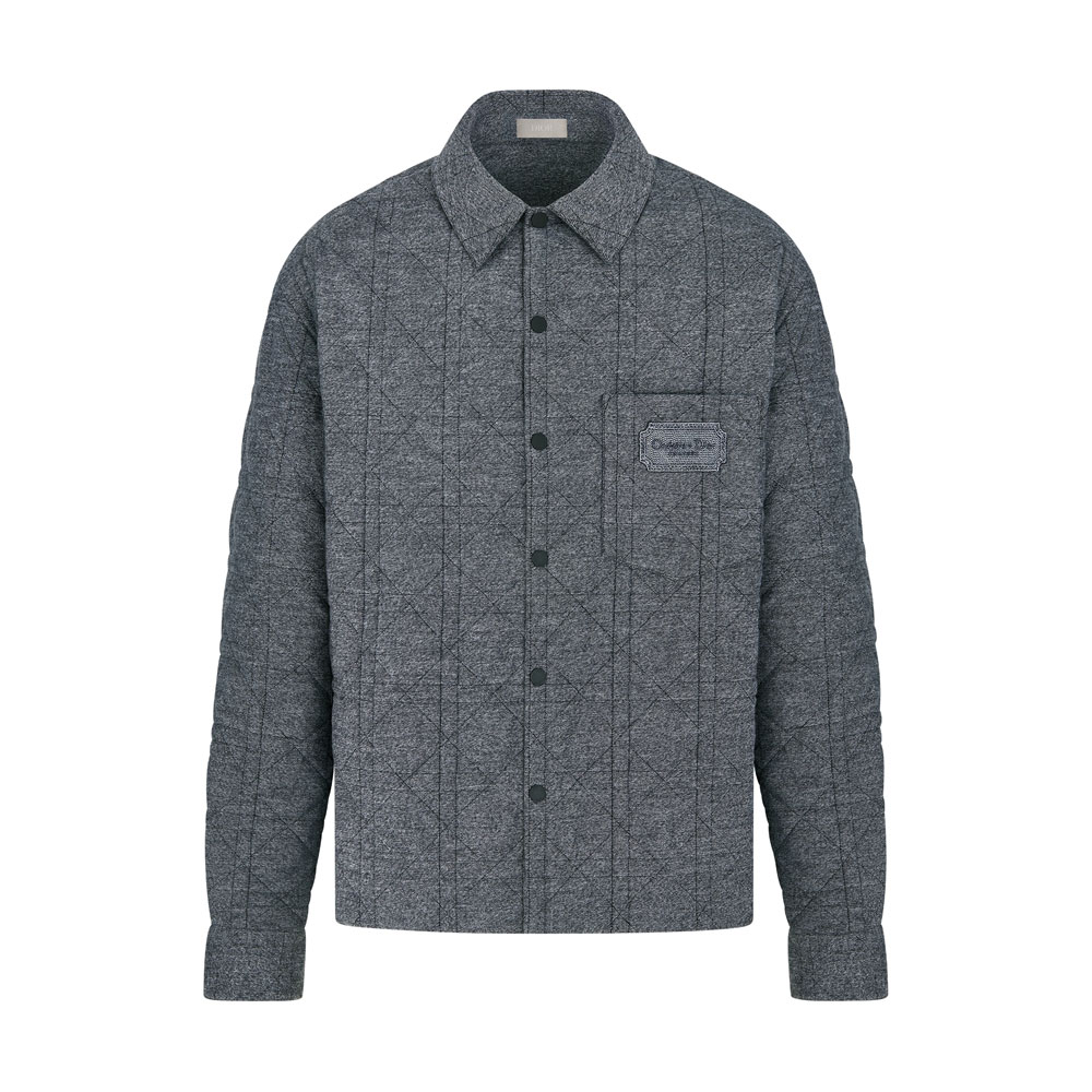 This modern overshirt reinvents a Dior classic with gray cotton flannel fabric. Features quilted Cannage pattern throughout and a chest pocket with signature Dior embroidery.