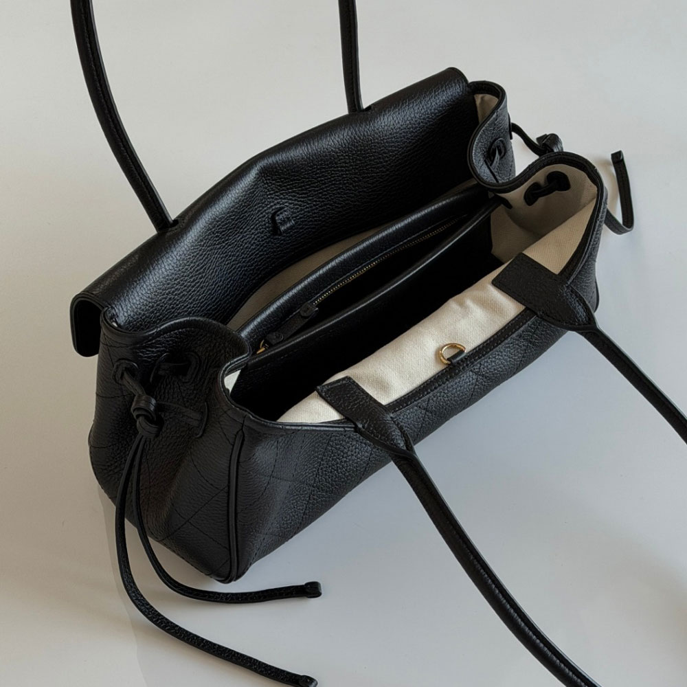 Material: Textured calfskin leather combined with gold-finished metal accents