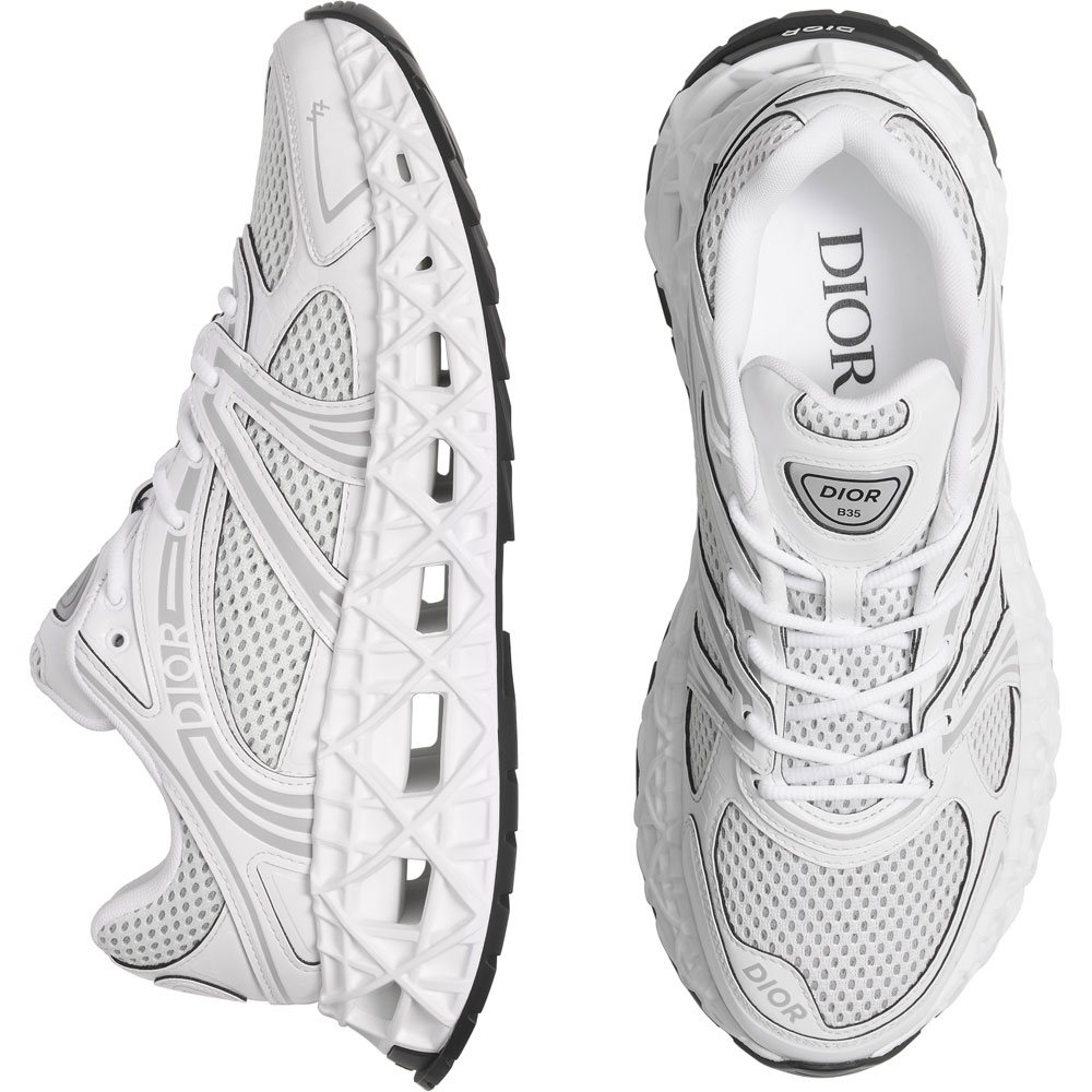 The white technical fabric/mesh upper delivers breathability with subtle contrast. Modern details include:Dior and 47 side logos