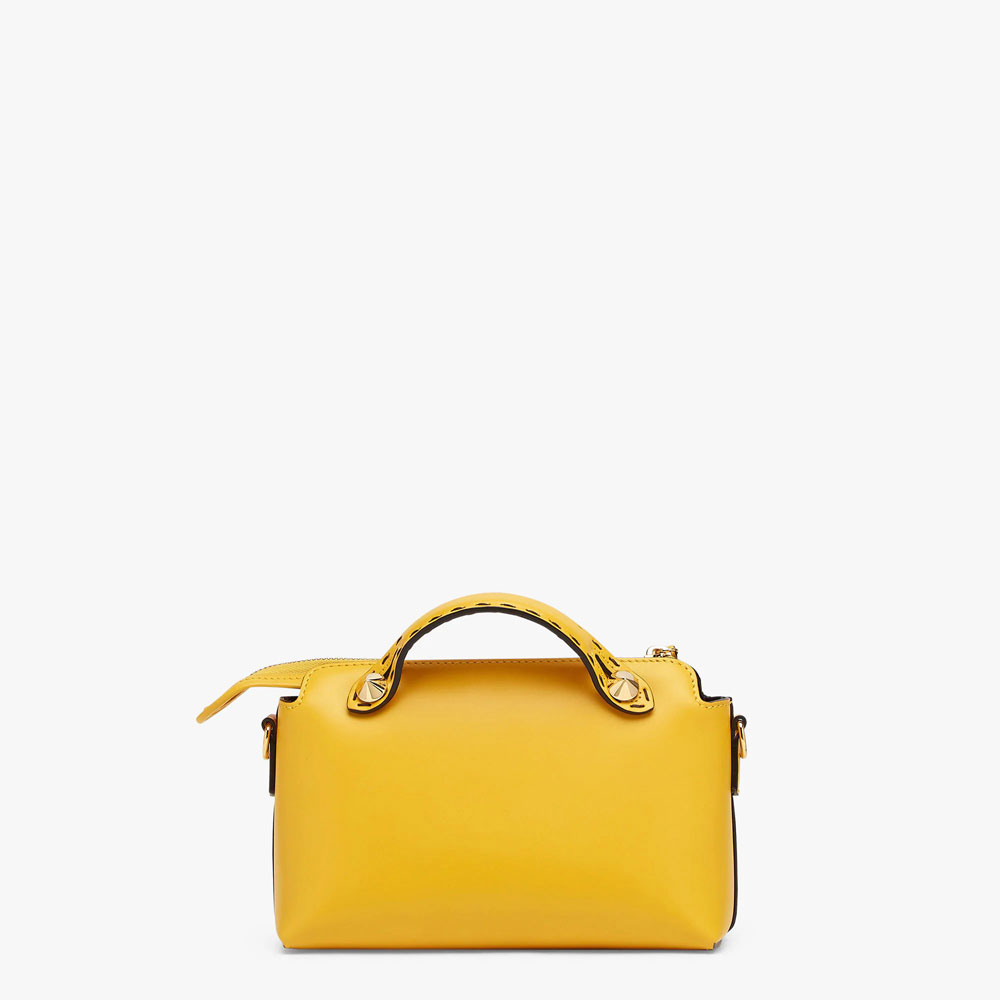 Iconic mini By The Way Boston bag. made of yellow leather with hot-stamped FENDI ROMA lettering. Zip fastening.