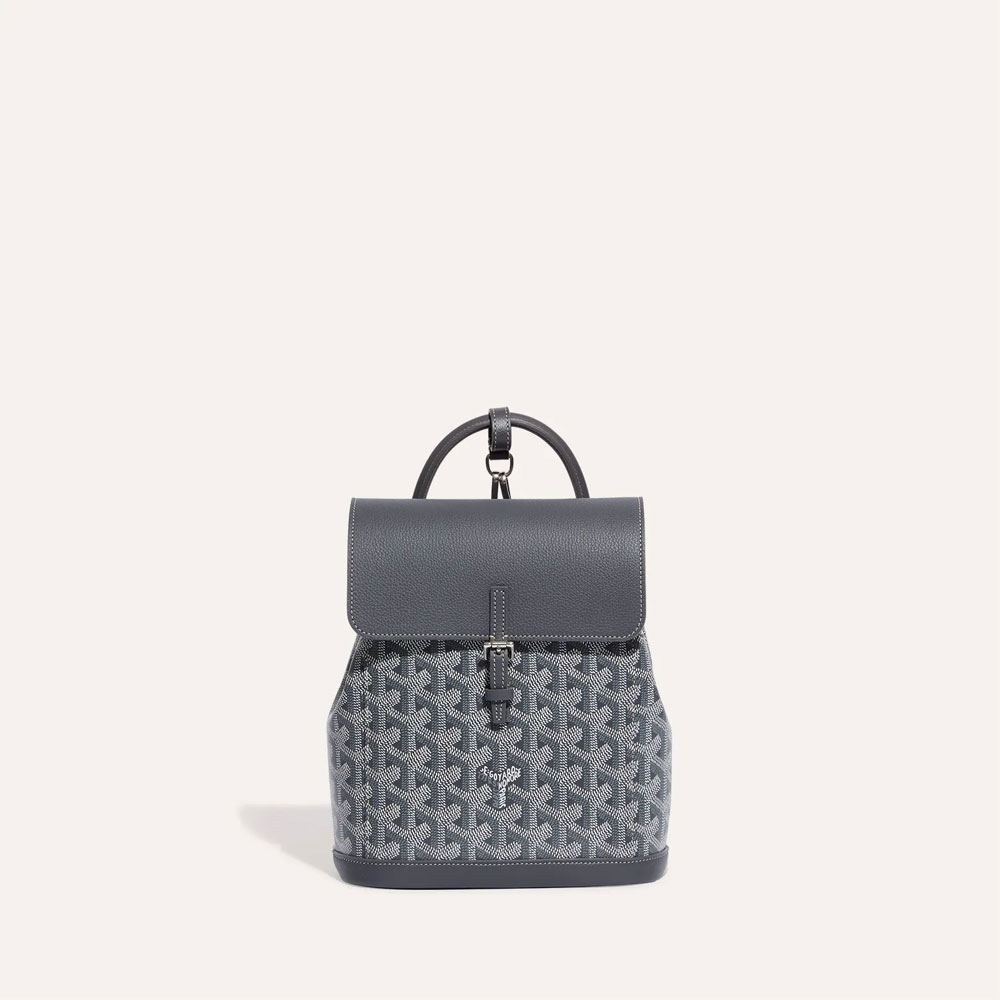 The Goyard Alpin backpack features smart attachments for diverse carrying methods.