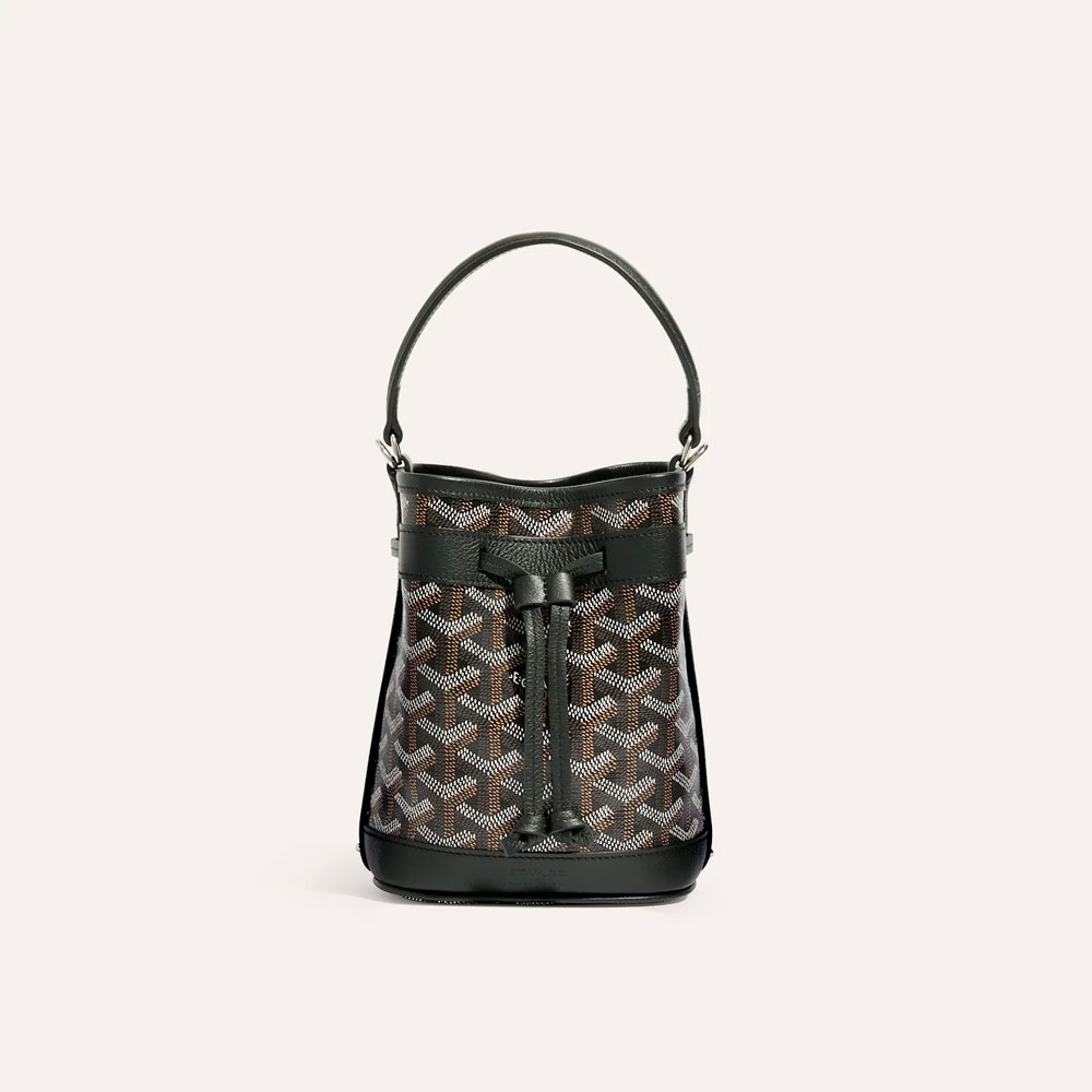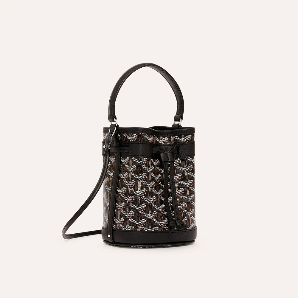 This stylish bag offers easy versatility. Redesigned as a compact version of the classic Flot, its smooth leather handle and drawstring closure ensure everyday practicality. Switch effortlessly between handbag or crossbody styles using the detachable strap.