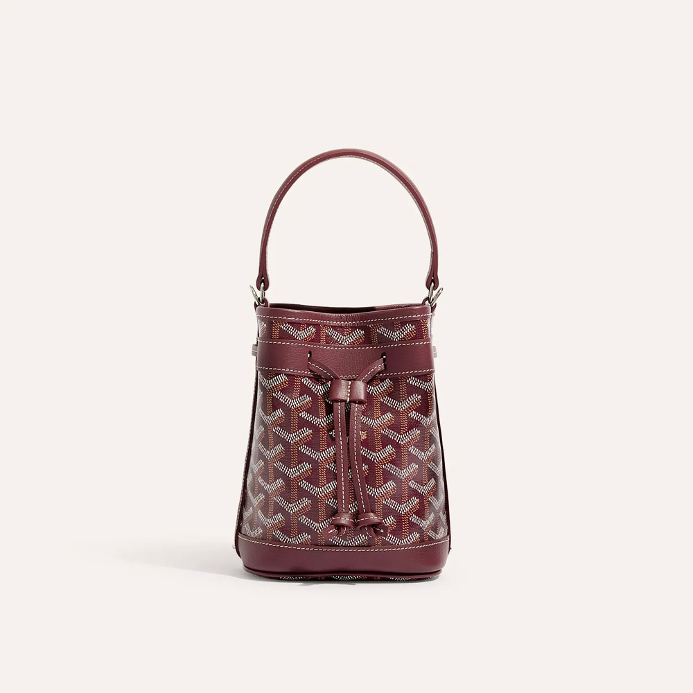 Featuring adaptable drawstring closure and a wide leather handle, this compact version exudes everyday elegance.