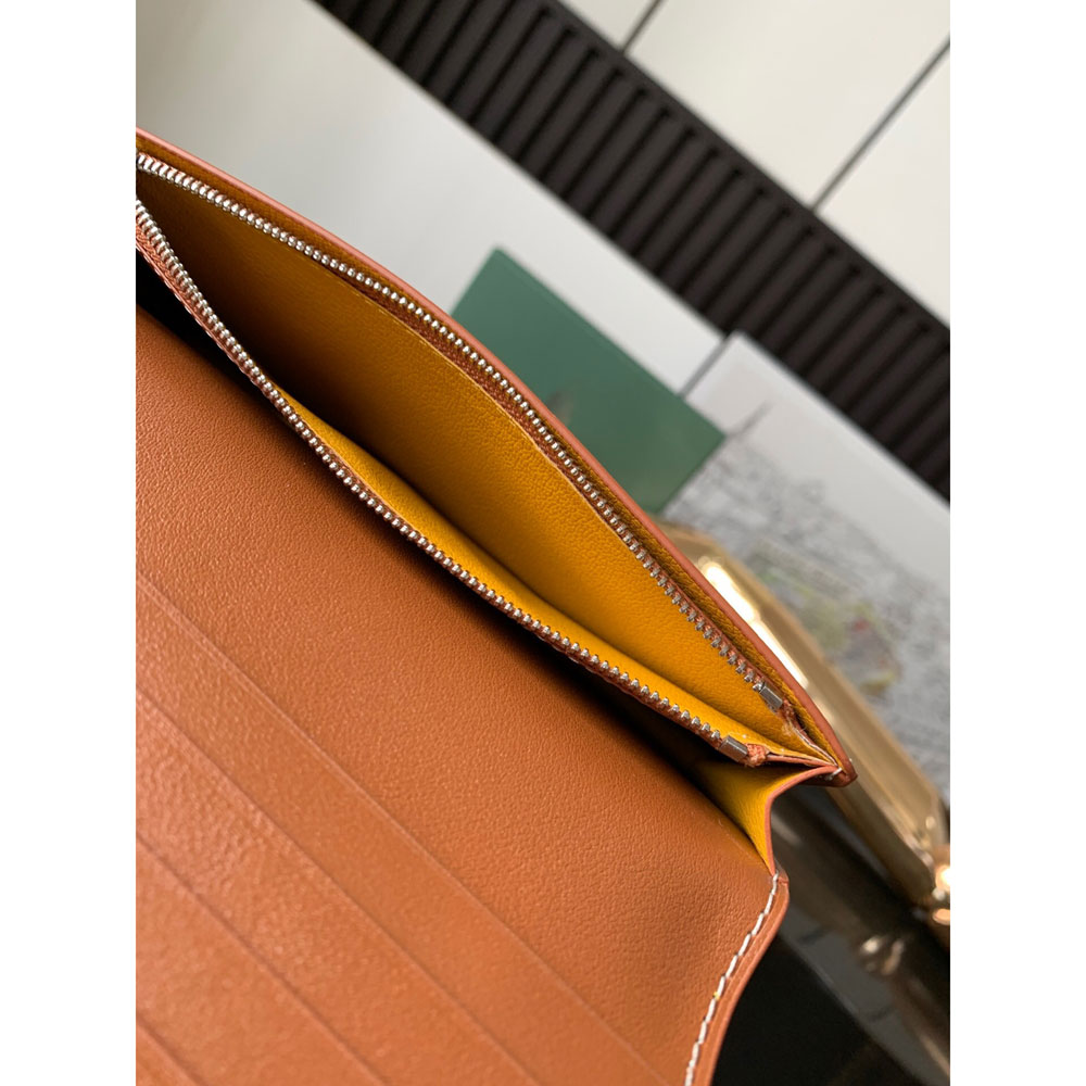 The Goyard Richelieu billfold features a secure snap closure.