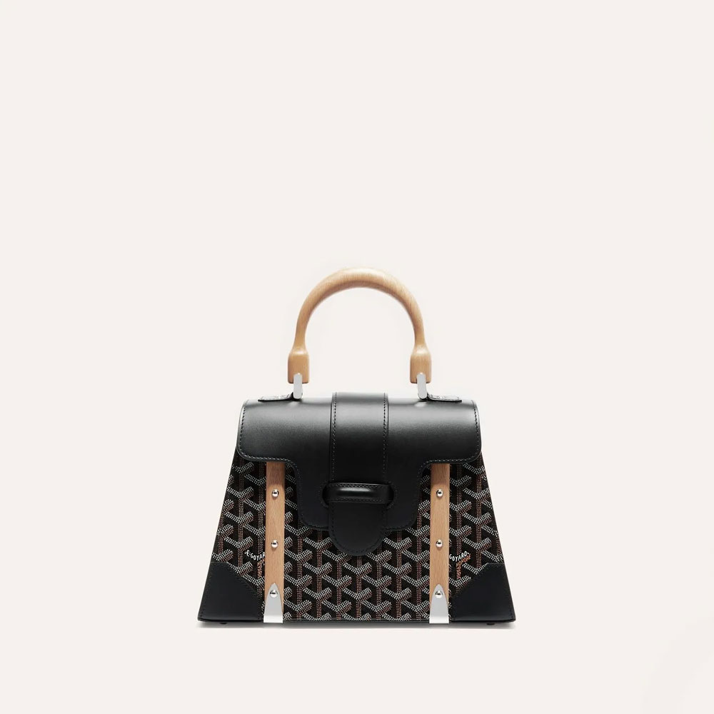 The Sa�gon bag reflects Goyard's heritage, showcasing distinctive wood elements and leather accents.
