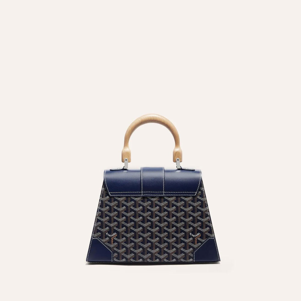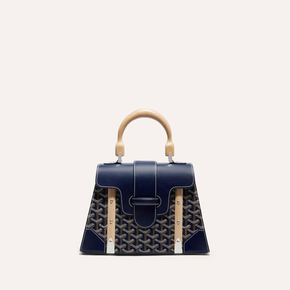 The Sa�gon tote embodies Maison Goyard's heritage, featuring wooden accents and distinctive metal hardware.