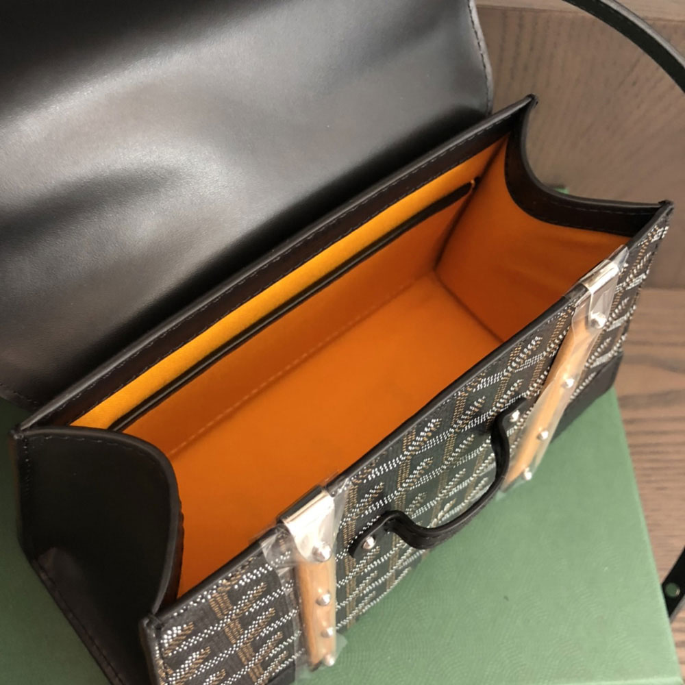Featuring wooden accents and metallic details, this compact version offers versatile styling.