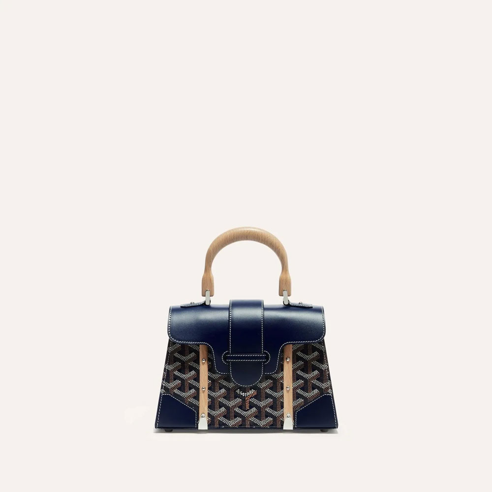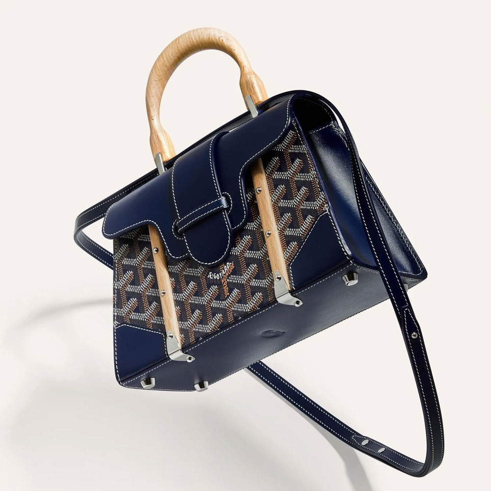 The Sa�gon reflects Goyard's heritage, featuring wooden accents and protective elements.