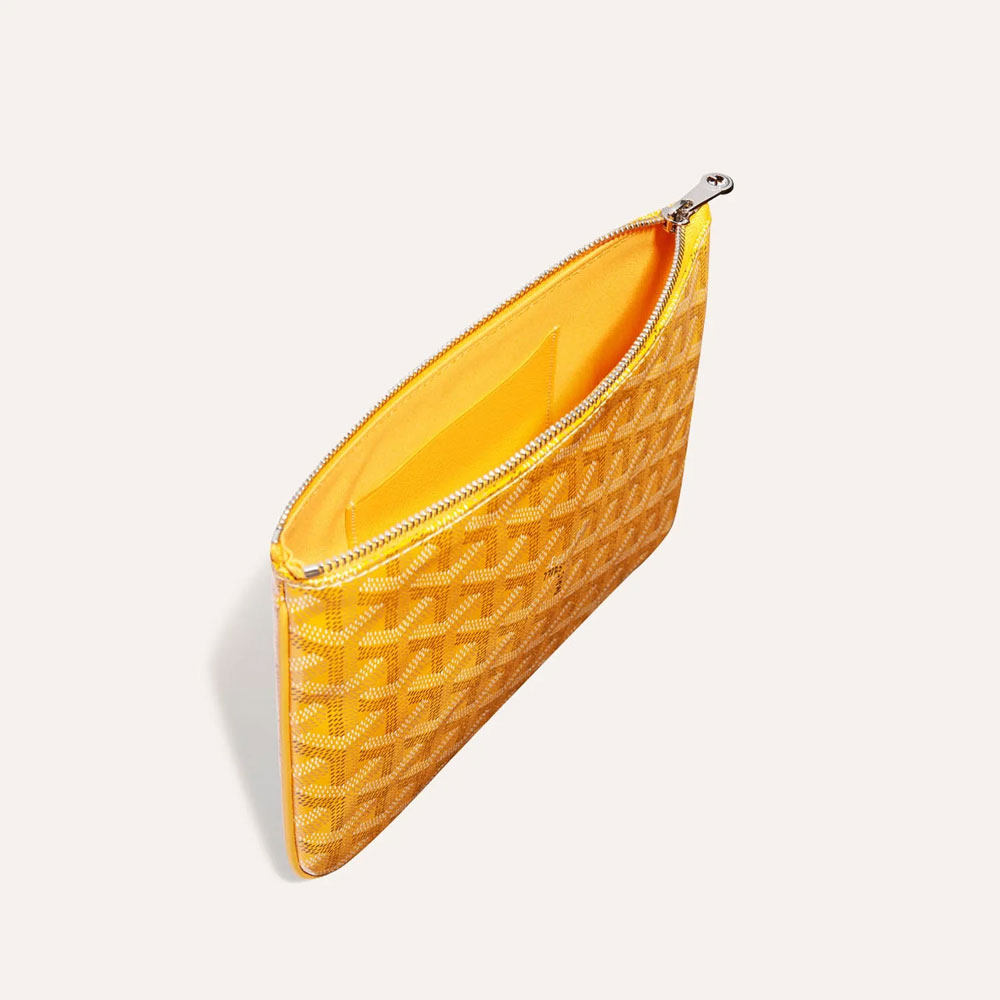 The Goyard Senat pouch in yellow offers compact storage for daily essentials.