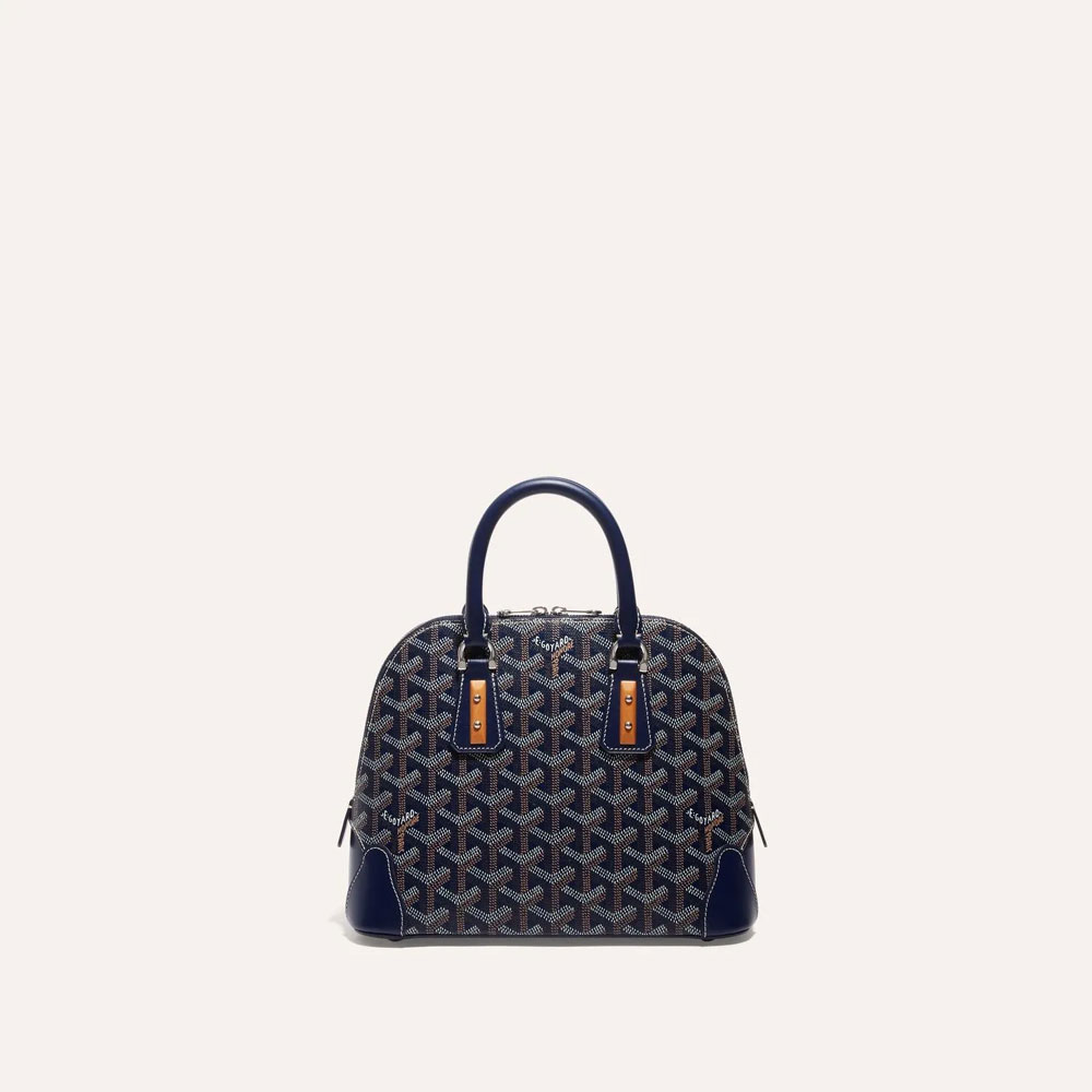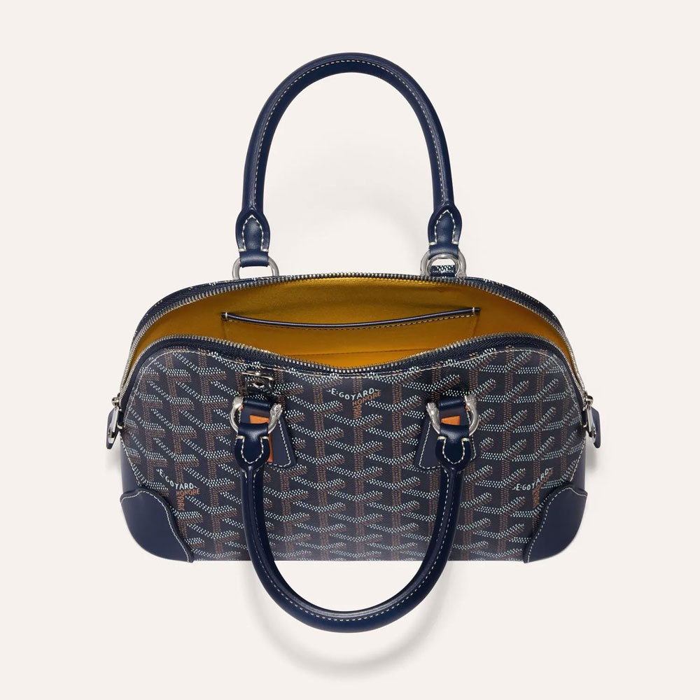The Goyard Vendome Mini in navy blue offers a compact alternative to its larger counterpart.