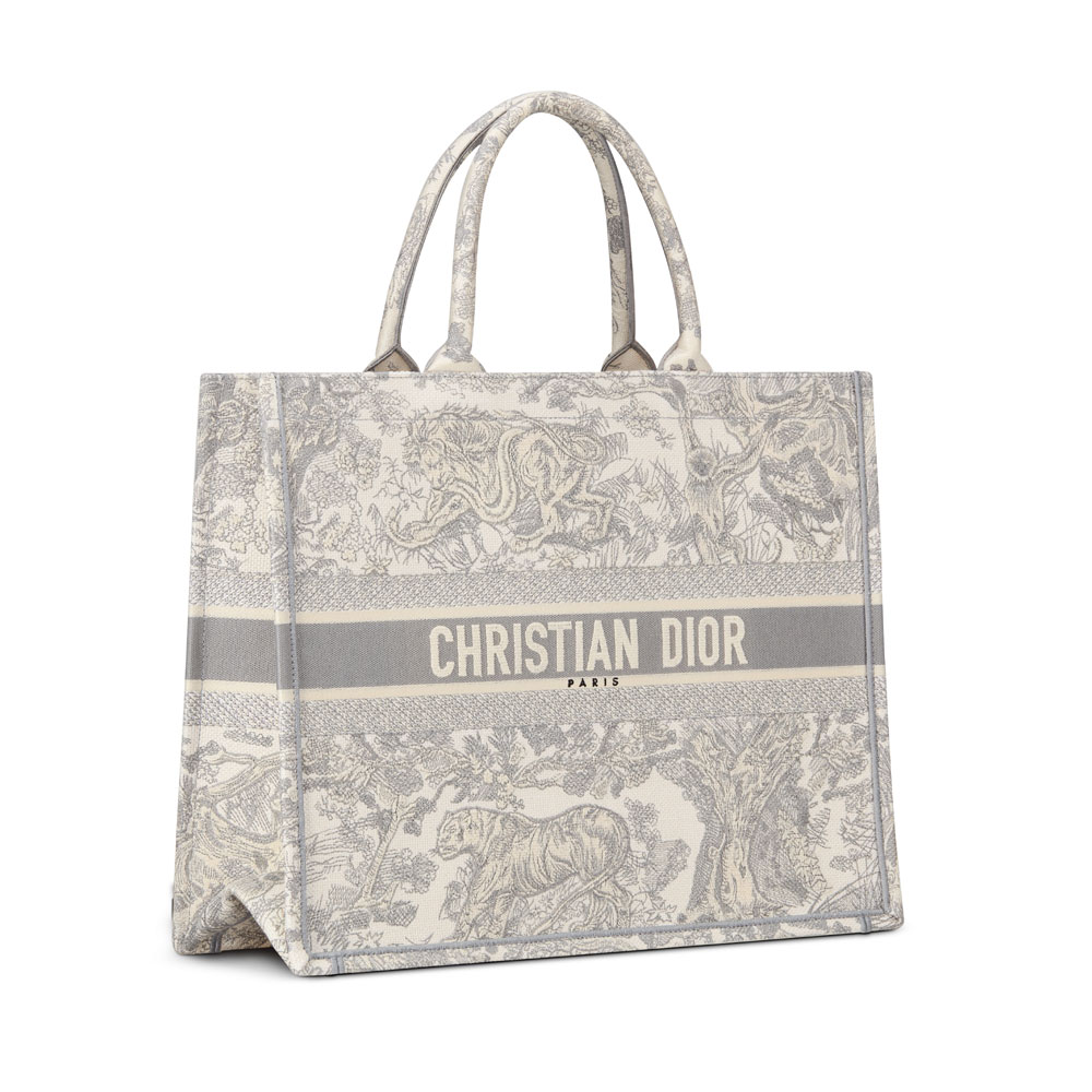 Crafted from premium cotton, this iconic piece embodies the brand's artistic legacy. Featuring Toile de Jouy motifs in earthy ecru and gray tones, the bag showcases intricate embroidery across its surface