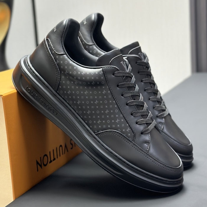Crafted for men, the Louis Vuitton Beverly Hills Sneaker blends timeless style with modern comfort. Featuring glazed calf leather adorned with a mini Monogram pattern, this sneaker delivers sophisticated luxury.