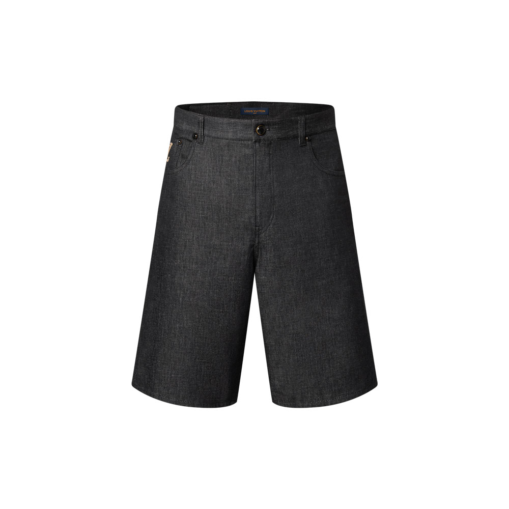 Explore Louis Vuitton Chambray Shorts: Fashioned from breezy cotton fabric, these dark shorts showcase the collection's signature LV embroidery.