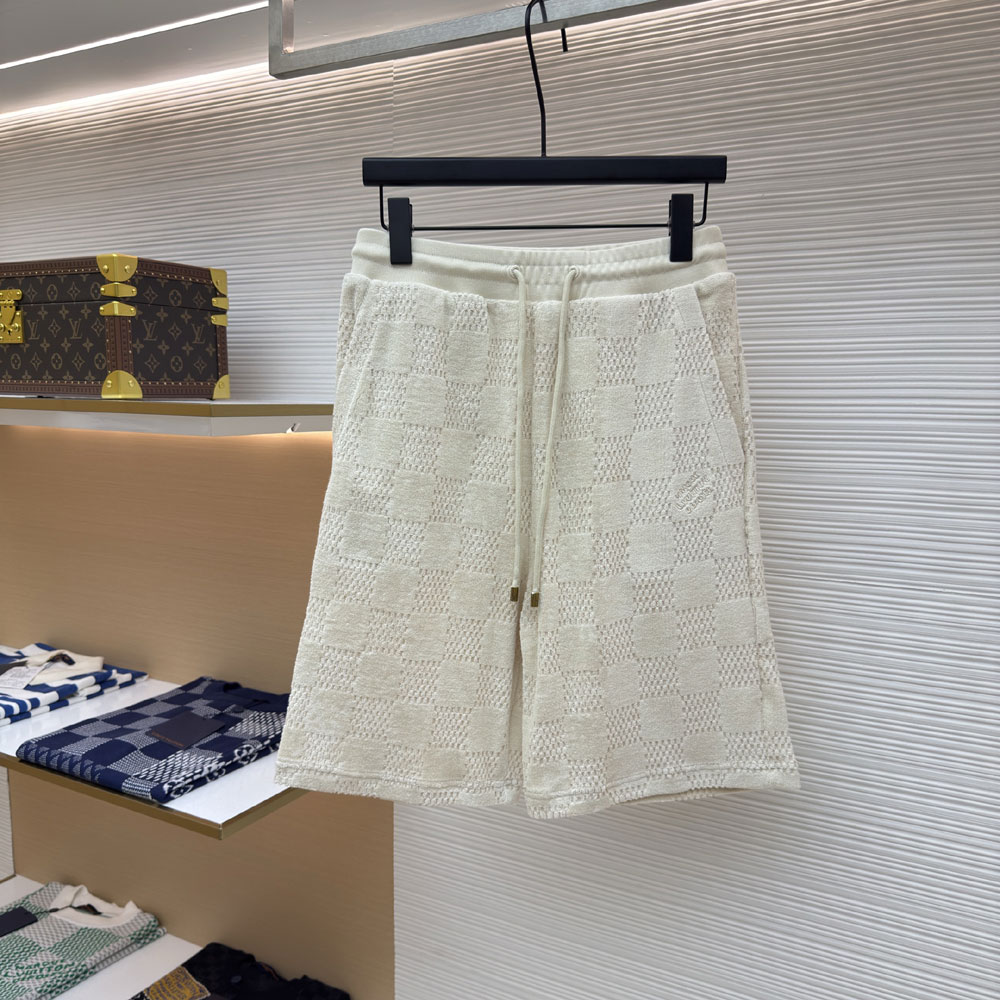 These casual shorts feature the iconic Damier pattern with subtle L.Vuitton embroidery. Made from comfortable French terry fabric, they offer a laid-back summer style.