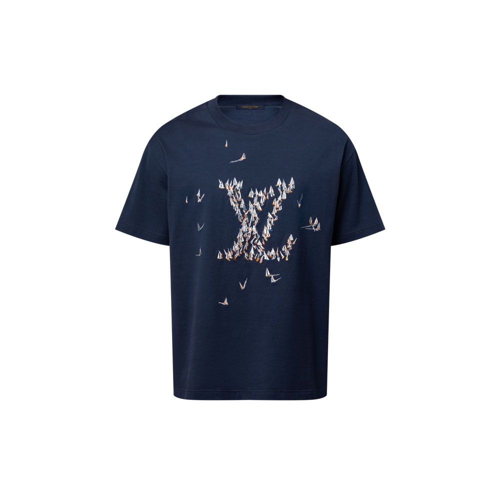 Inspired by maritime journeys, it shows embroidered boats forming an LV logo.