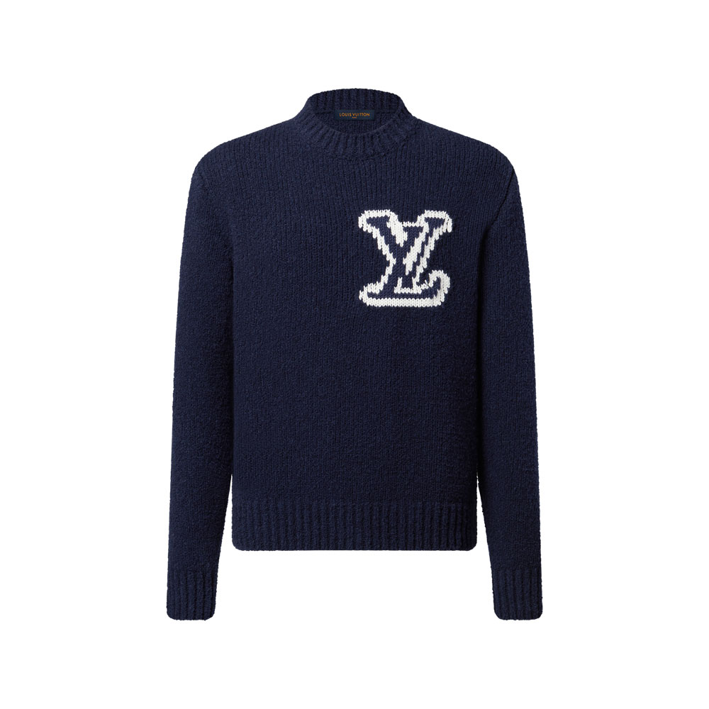Explore the Louis Vuitton LV Intarsia Crewneck: Crafted from soft wool-blend yarn for exceptional comfort. The chest features a bold LV knit motif, playfully mirrored on the back for a unique twist.
