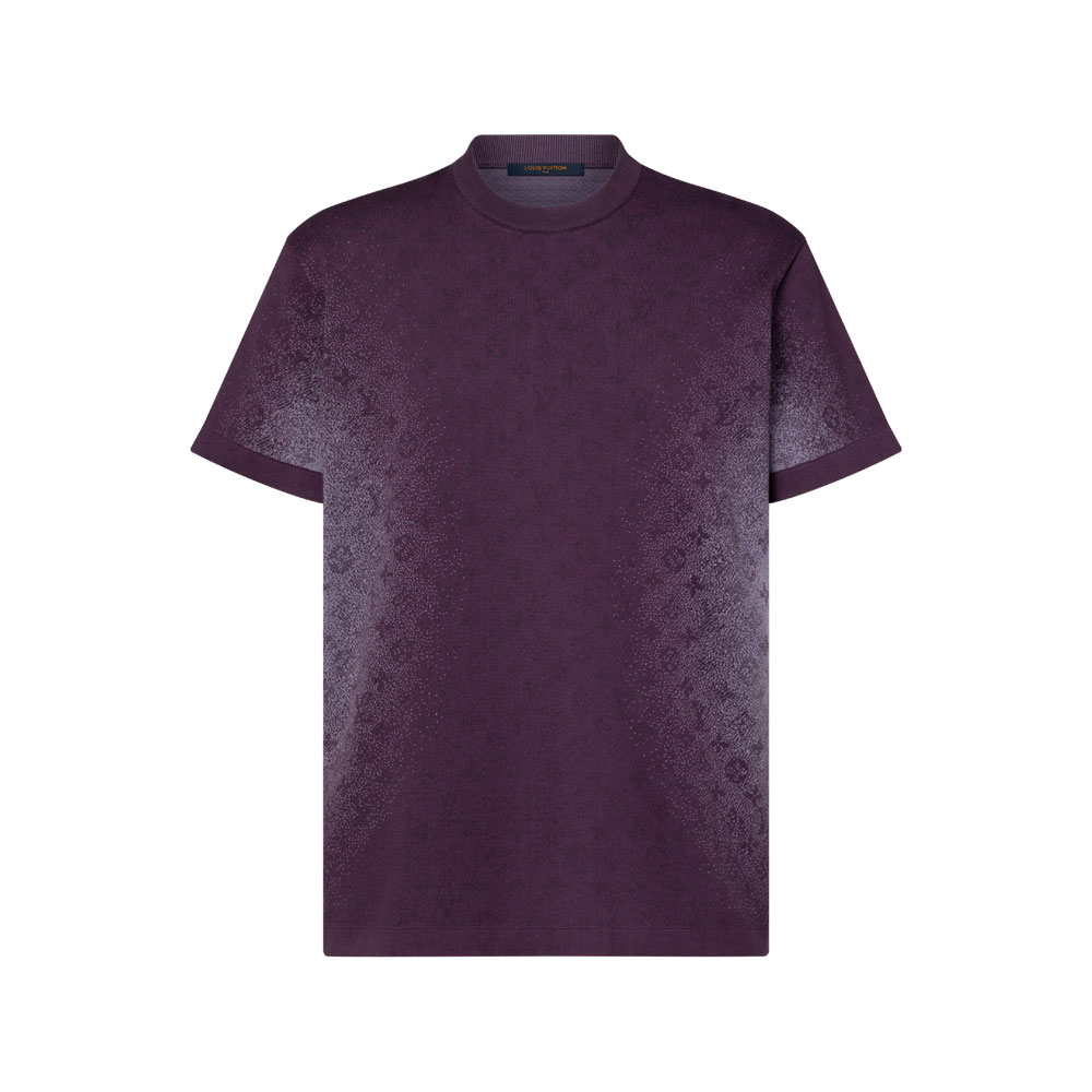 This short-sleeved cotton top features a unique sun-bleached effect, drawing inspiration from Indian dye techniques and sunlight. The purple-toned jacquard knit showcases an elegant allover Monogram pattern, subtly fading on sides and sleeves.