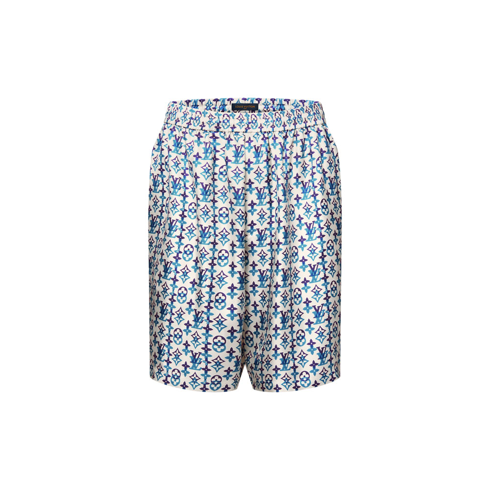 Crafted from organic silk, they showcase a vibrant turquoise and purple Monogram print.