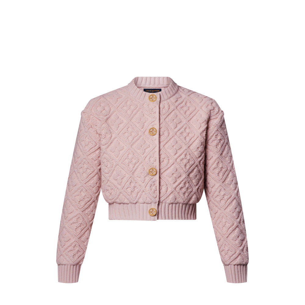 Discover the Louis Vuitton Monogram Cardigan reinterpreted in soft toweling fabric. This crew-neck design showcases the iconic Monogram pattern throughout, beautifully contrasted by chunky ribbed hems.