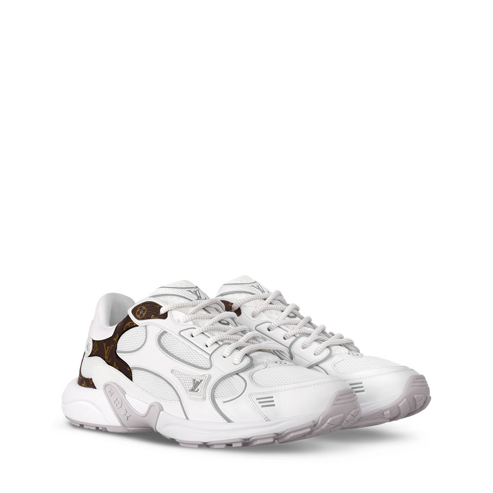 The Louis Vuitton LV Olympia sneaker combines athletic inspiration with fashion-forward design. Featuring Monogram canvas, mesh, and synthetic leather, this lightweight shoe delivers both comfort and luxury.