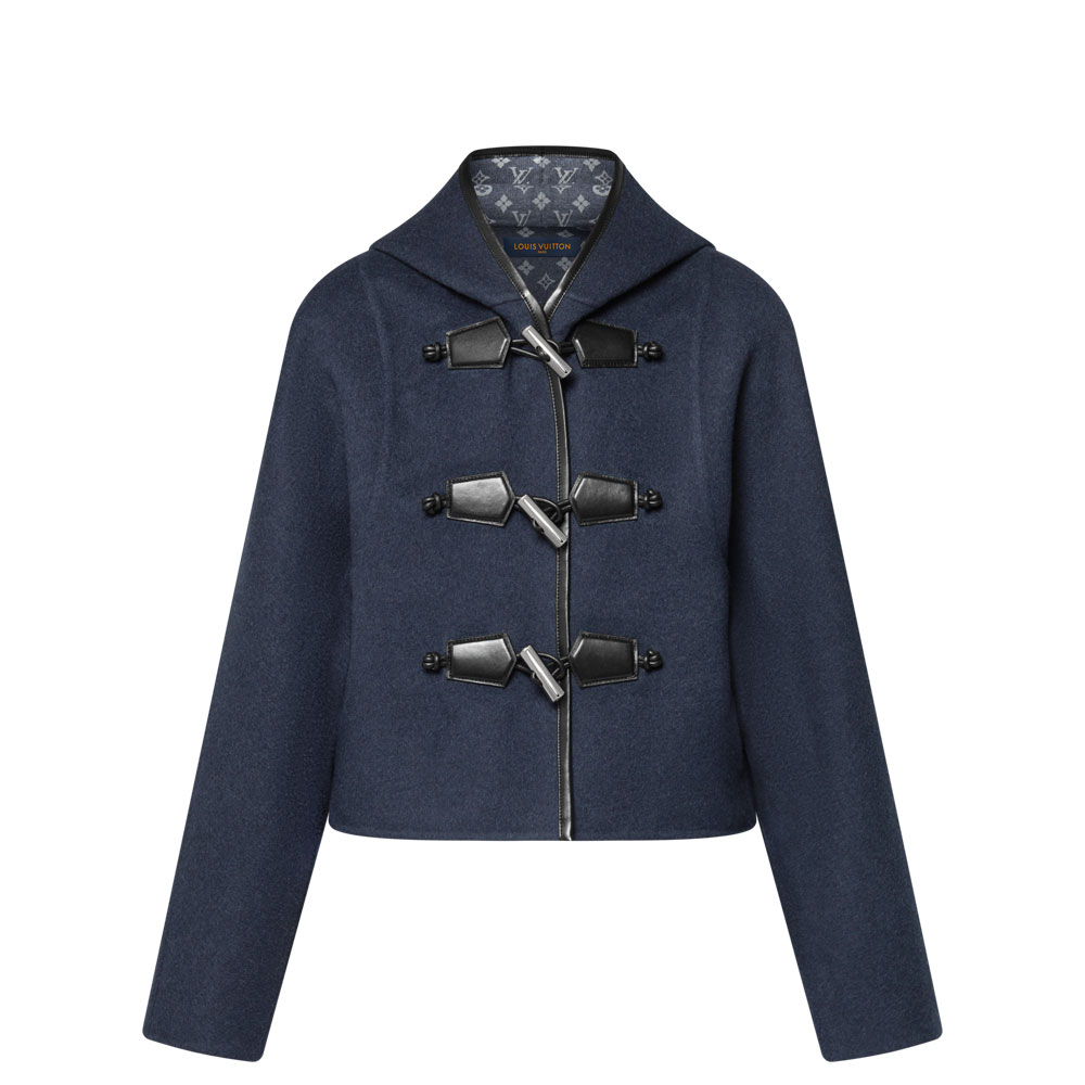 Elevate your winter wardrobe with this stylish Louis Vuitton duffle coat. Crafted from premium double-face wool-silk blend with subtle Monogram jacquard lining, it combines warmth with luxury.
