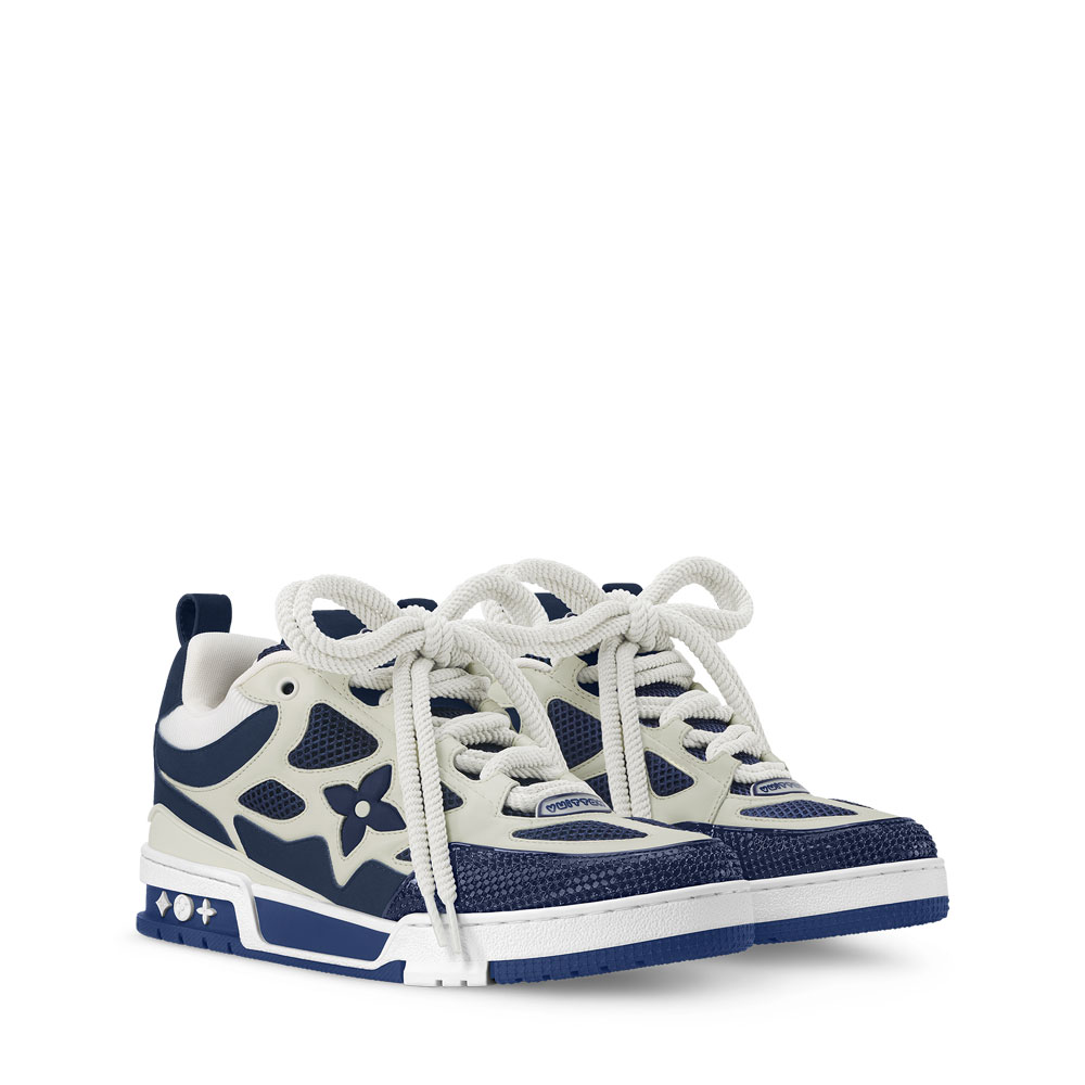 Introducing the Louis Vuitton LV Skate Sneaker, inspired by 90s designs showcased at Vuitton's FW22 men's collection. Combining premium materials like calf leather, suede, and technical mesh, it features a striking bicolor upper adorned with signature Monogram Flowers.