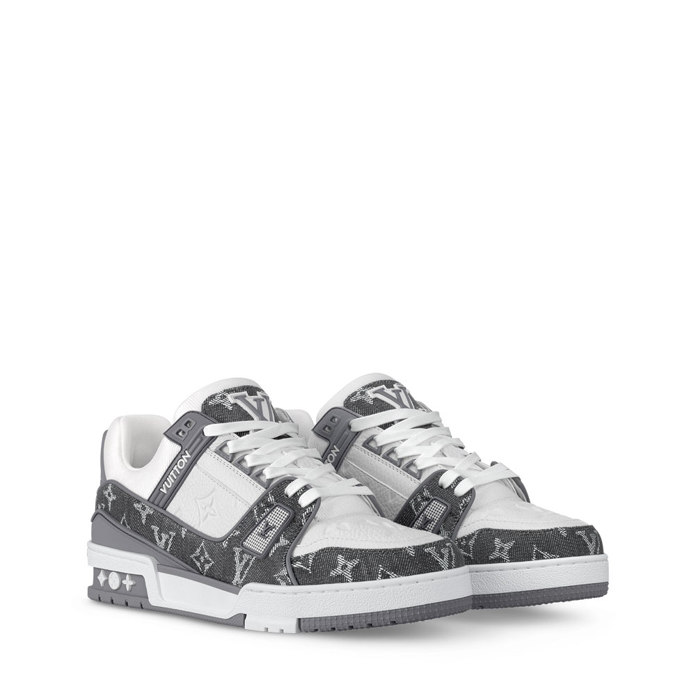 For the first time, Louis Vuitton reinvents its iconic LV Trainer sneaker for women. Originally designed for men by Virgil Abloh, this stylish version combines premium calf leather with Monogram denim, featuring vintage basketball-inspired details.