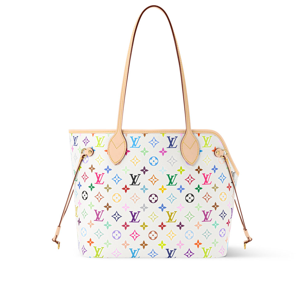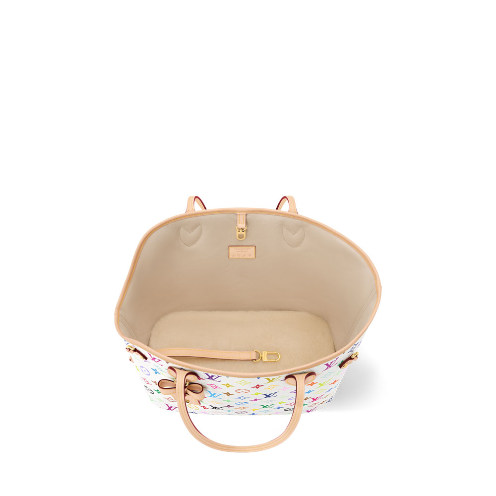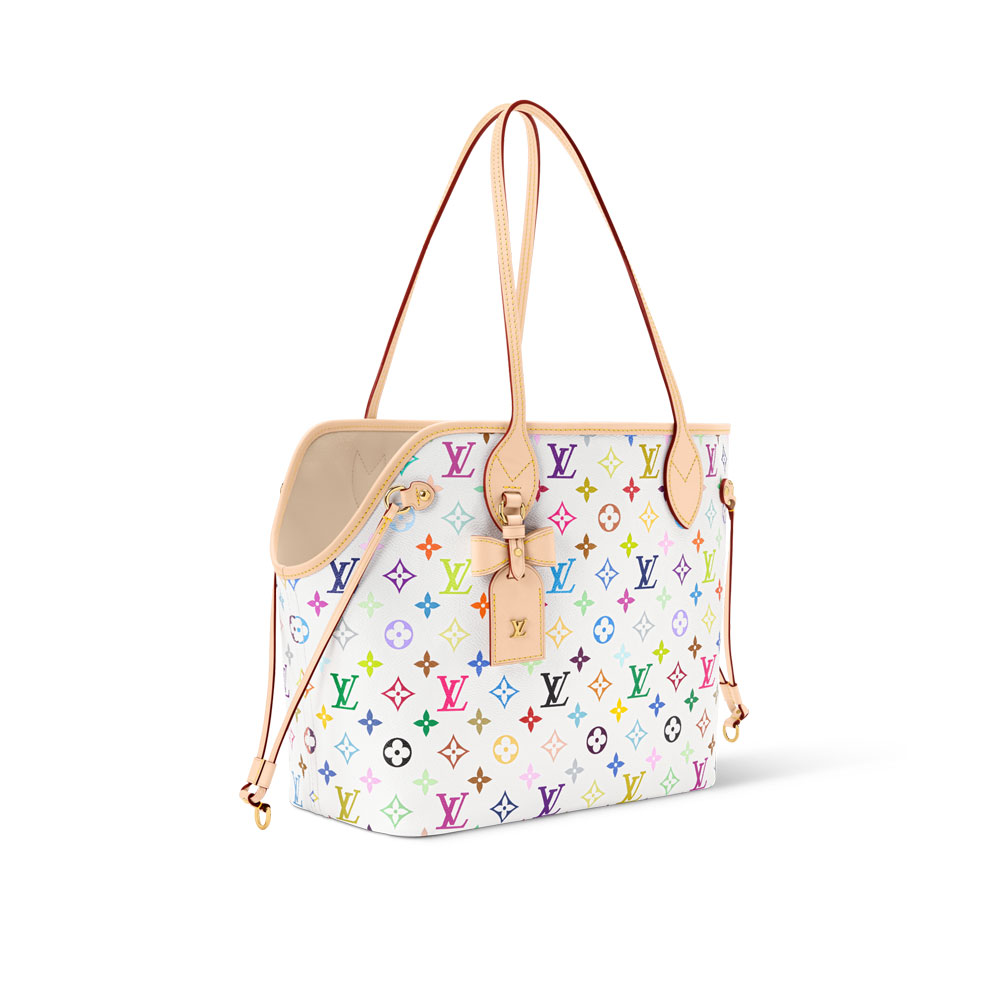 Introducing the stylish Louis Vuitton Neverwoof MMa pet-friendly twist on the classic Neverfull tote. Crafted from Takashi Murakamis vibrant Multicolore canvas, this bag features a cushioned interior for small dogs, plus a built-in leash and washable mat.