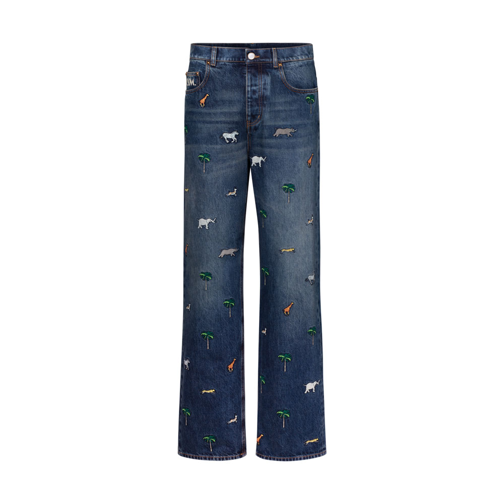 Showcasing the iconic SS26 LV collaboration motif, these graphic denim pants feature: