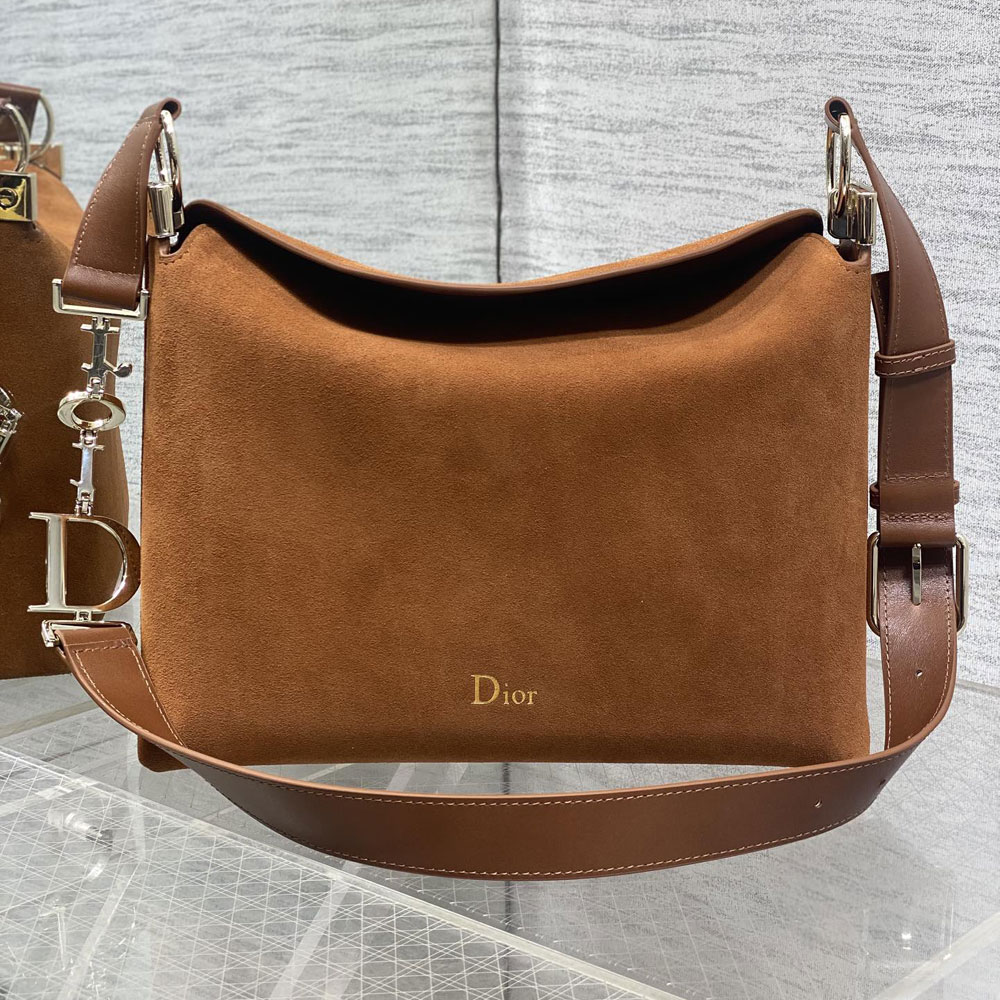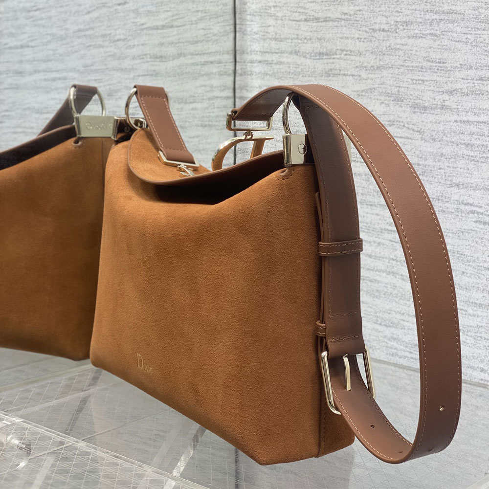Golden suede calfskin with a soft, luxurious finish. The medium-sized design strikes the perfect balance between style and functionality.