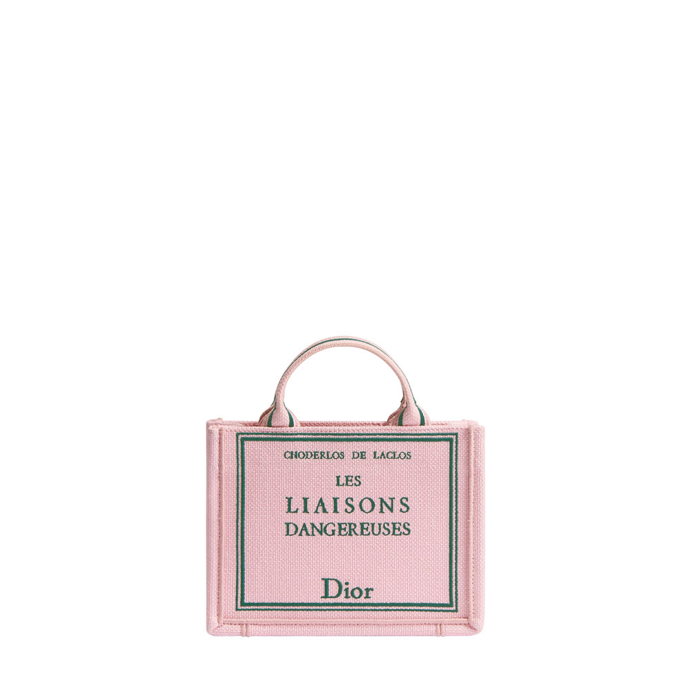 A charming pink and green embroidered version of the iconic Dior Book Tote.