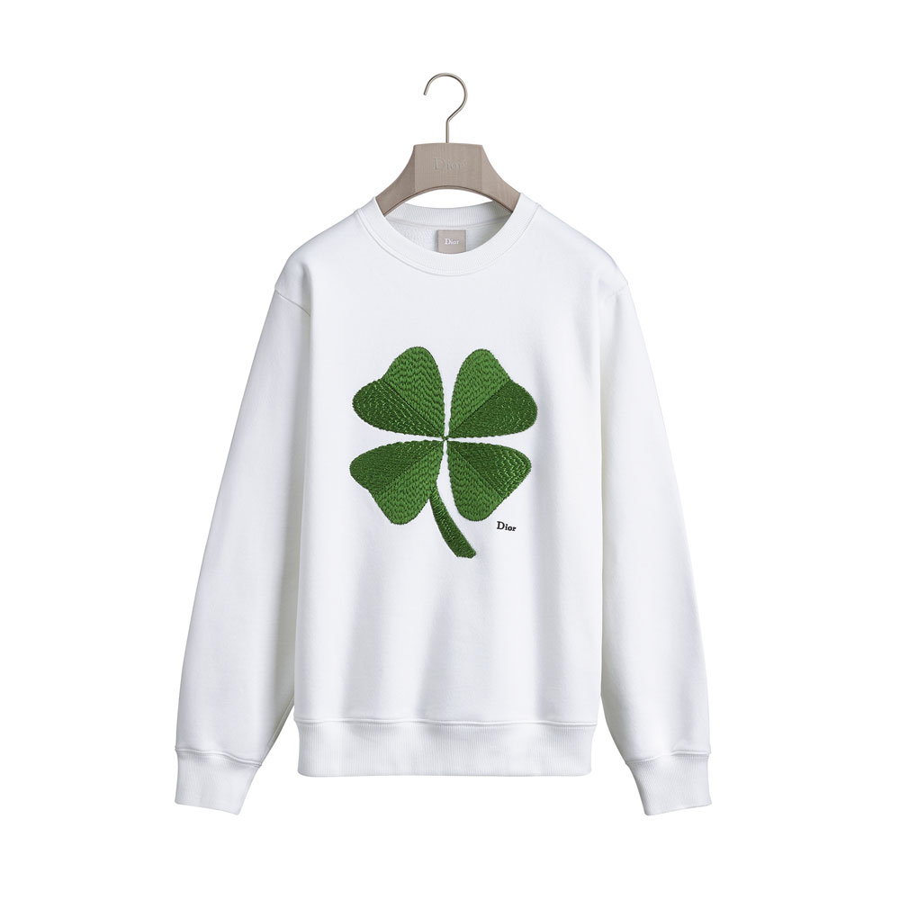 Jonathan Anderson reinvents Dior's lucky clover motif on this white cotton fleece sweater.
