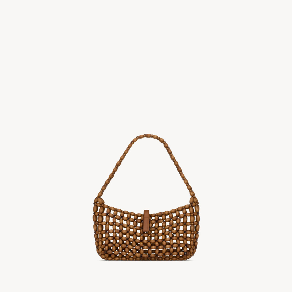 Elegant women's shoulder bag with wooden bead detailing.